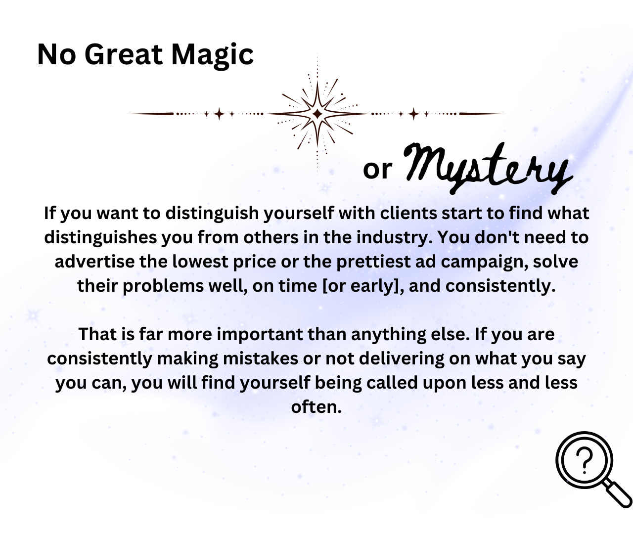 A common mistake consultants make is inflating abilities, leaving clients disappointed. Instead, manage expectations realistically, then consistently surpass them. Clients appreciate and remember exceptional delivery.